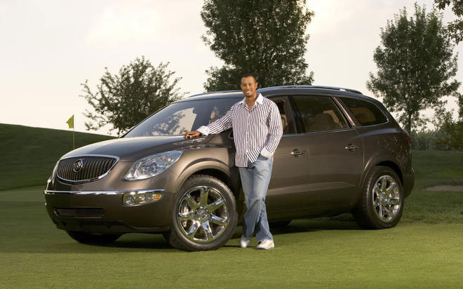 ビュイックの新型車の発表会やモーターショーには、ウッズ選手がたびたび登場。また、ウッズ選手のゴルフバッグや帽子には「BUICK」のロゴが添えられ、ウッズ選手が参加する大会には、「BUICK」が冠スポンサーとして名を連ねていたものである。