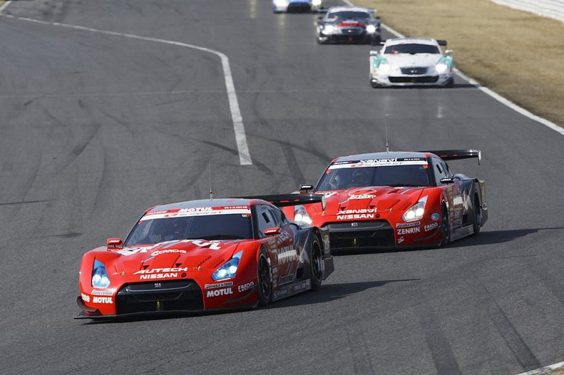 第1戦を制したのは、今回デビューレースとなるNISSAN GT-R。XANAVI NISMO GT-R(本山哲/ブノワ・トレルイエ組)がトップ、MOTUL AUTECH GT-R(ミハエル・クルム/柳田真孝組)が2位と、GT-R勢が初陣で見事ワンツーフィニッシュを決めた。