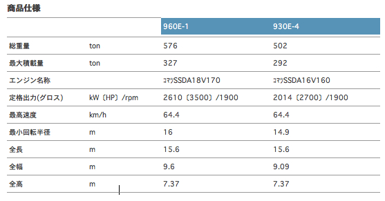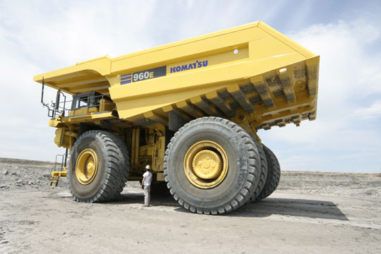 コマツは最大積載量が327t、タイヤの直径が4mもある同社最大のダンプトラック「960E」を今年後半に発売する。
