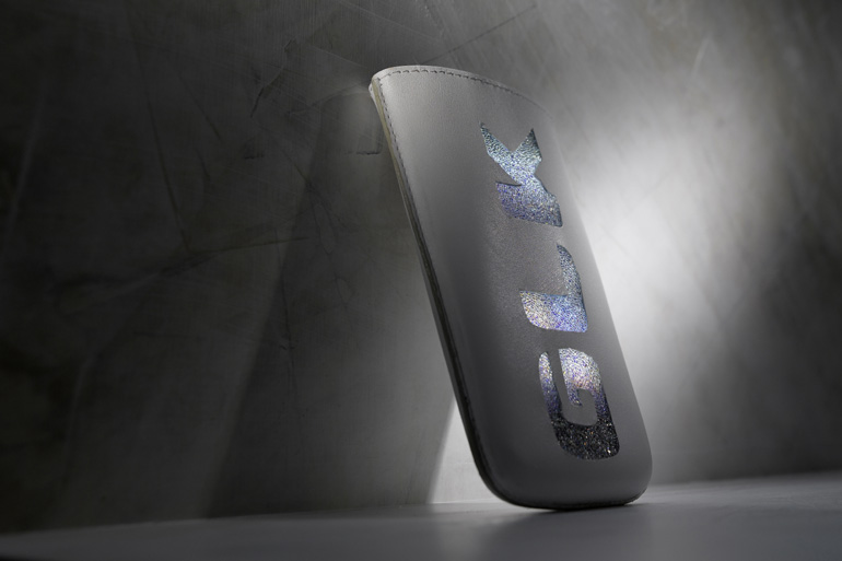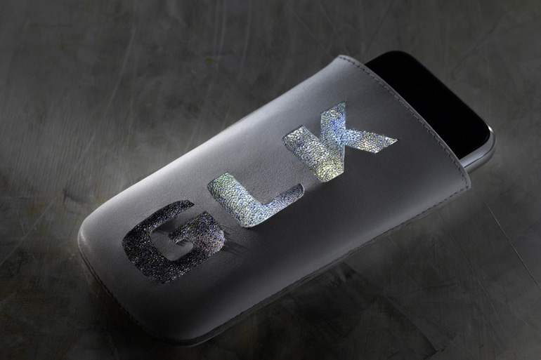 オーストリアのクリスタル専門ブランド“スワロフスキー”とのコラボレーションによりわずか40個限定で作られたiPhoneポーチは、最高級のナッパレザーを本体に採用。GLKと書かれたロゴ部分にはクリスタルを使用し、iPhoneの液晶の光がクリスタルを通してきらびやかに光る演出が施されているのだ。