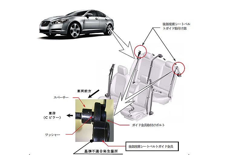 ジャガー・ランドローパー・ジャパンは、XF3.0、XF4.2、XF Super V8のシートベルトと座席ベルト非装着時警報に不具合が発生し、リコールを発表した。