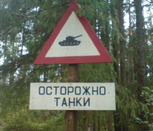 戦車に注意・・・。国が違えば標識も違う。ある意味日本は平和です。