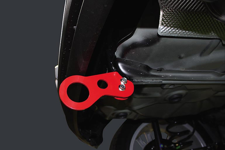 今回発売するトーイングフックはカラーが赤のみとなるが、材質にスチールを採用し、軽量、剛性とFIA項の基準に則った形状設計で国際・国内のレースにも使用可能だ。