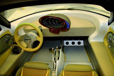 電気モーターで推進するスキューバは、10メートルの深さまで潜航が可能。オープンカーの スタイルにしたのは、水中で緊急事態が起きた際に乗っている人がいち早く脱出できる安全面を 考えたの窓を閉め切るタイプにした場合に掛かる大きな水圧を避けるためだという。