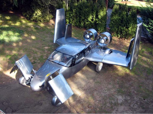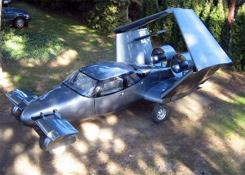 Milner AirCarは、通常は公道を走行可能な乗用車だが、地上走行モードからスピーディーに翼を展開して、上空飛行モードへと移行! 前輪部と後輪部に翼が広がると、たちまちプロペラ飛行機へと早変わりし、最長1,000マイル(約1,610km)の距離を時速200マイル(約 322km)で飛行できるという。