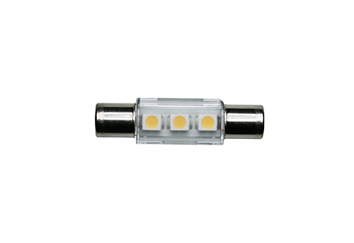 バニティミラー付きサンバイザー用の照明として使える『LED T6.3サンバイザーミラータイプ ミストホワイト』は、LEDバルブに交換することで肌色を自然に見せる白色光に変えることができる。