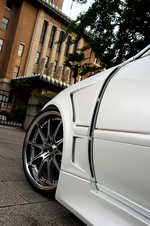 ボディをフロントで約40mm、リアで約50mmワイド化するキットである同商品。100系マークII用は、フロントバンパースポイラー、サイドステップ、リアバンパースポイラー、フロントエアロフェンダー、リアドアパネル、リアエアロフェンダー、リアバンパーサイドパネルの合計7ピースで構成されている。トータルで装着することにより、マークIIにワイドで攻撃的なシルエットを与えることができる。