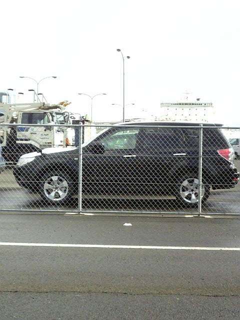 船積みされる寸前のフォレスターです。ここから各ディーラーに運ばれていくんですね。しかしヘッドライトがツリ目になっているのが、意外にカッコイイですね。