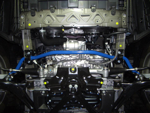さらに、『パワーブレース』もボディ補強系パーツのひとつ。センターとリヤの2ヵ所でボディ剛性を高め、歪みの抑制やドア周りのキシミ音低減といった効果をもたらす。箇所によって一部加工が必要だが、基本的にはボルトオン装着が可能だ。