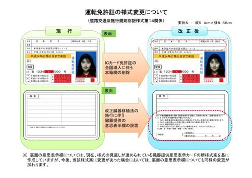 運転免許証の様式変更で、免許証裏面に「臓器提供の意思表示欄」が創設される。これには様式変更を超えて、臓器移植についての問題をはらんでいる。