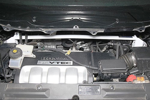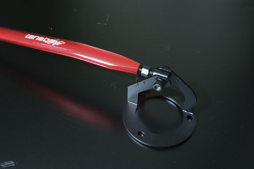 『ストラットタワーバー』は、左右のサスペンション上部取付け部を結ぶことでサスペンションの挙動を安定するとともに、剛性アップにより、サスペンションダンパー本来の性能を引き出す事が可能。また、マスターシリンダーストッパーを装備しているので、ブレーキタッチのフィーリングもアップする。素材はスチール製とアルミ製を用意する。