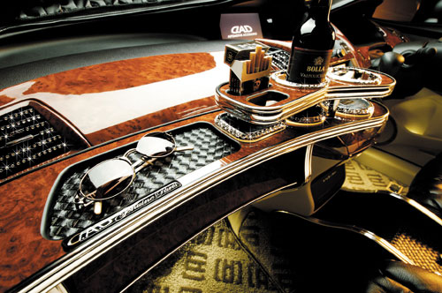 これはサングラスなどを置けるトレイ、タバコケースの収納スペース、ドリンクホルダーなどが一体となっており、助手席側の前に設置する。実用性を兼ね備えつつも車内にラグジュアリー感を演出したデザインが特徴だ。テーブルカラーはブラックウッド、ナチュラルウッド、ジャガーブラック、ライトマホガニーの4 種で、トレイ部分のレザーパターンはベガ、クロコダイル、リーフの3種を用意。