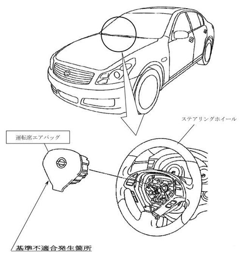 日産自動車は3日、『スカイライン』の運転者席エアバッグに不具合があるとして、国土交通省にリコール(改修・無償修理)を届け出た。