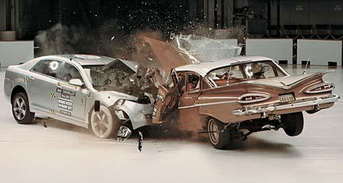 米国IIHS(道路安全保険協会)は、GMの2009年式シボレー『マリブ』と1959年式シボレー『ベルエア』の衝突テストを実施した。50年間の衝突安全性の進歩を確認するのが目的だ。