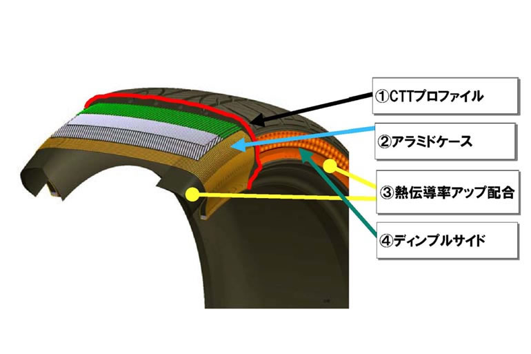 同社傘下のダンロップは、1970年にいち早くランフラットタイヤを実用化。以降、標準ホイールにも装着可能な『DSST』や、軽量化や快適な乗り心地を追求した『CTTランフラットタイヤ』など、ランフラットタイヤの技術開発に積極的に取り組んできた。