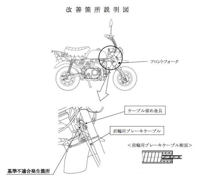 本田技研工業は3日、原付バイク『モンキー』の前輪用ブレーキケーブルに不具合があるとして、国土交通省にリコール(回収・無償修理)を届け出た。