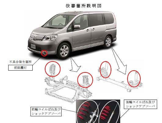 対象となるのは、2006年1月9日 - 2007年11月27日に販売した「S-TUNEサスペンションキット」約130セットで、『セレナ』の「20RX」、「20RS」グレードに装着したもの。