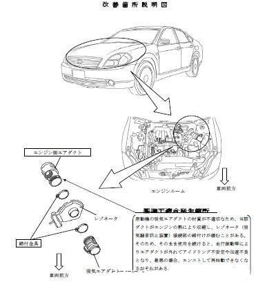 日産自動車は14日、『ティアナ』『プレサージュ』『ムラーノ』3車種の吸気エアダクトに不具合があるとして、国土交通省にリコール(回収・無償修理)を届け出た。