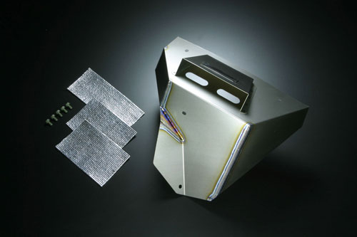 この『チタニウムエキマニプレート』は、エキマニの放熱による熱害からエンジンルームを保護する遮熱板で、素材にチタンを採用して優れた耐食性を確保したのが特徴だ。使用するうちにチタン特有のテンパーカラーにより深みが増してエンジンルームをレーシーに見せる効果もある。