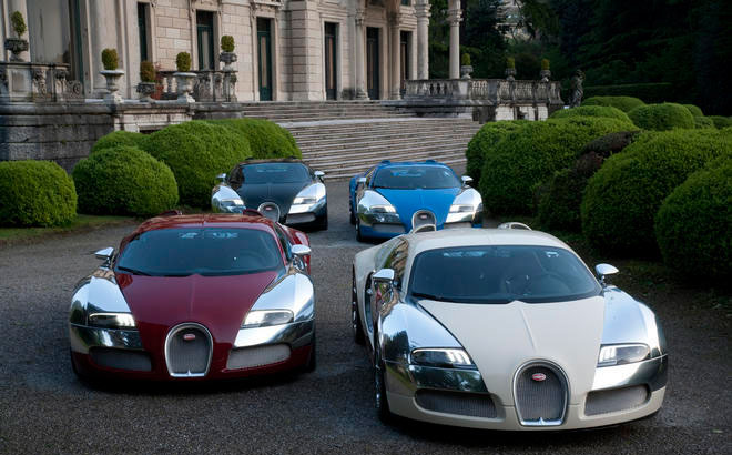 ブガッティはイタリア・コモ湖畔で開催された「コンクールデレガンス」に、ブガッティブランド誕生100周年を記念した『ヴェイロン』4台を出品した。