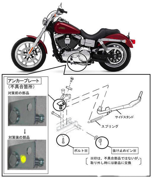 ハーレーダビッドソンジャパンは29日、オートバイ『ダイナ』ファミリー5車種のサイドスタンドに不具合があるとして、国土交通省にリコール(回収・無償修理)を届け出た。対象となるのは、2008年8月28日 - 同年9月25日に輸入された242台。