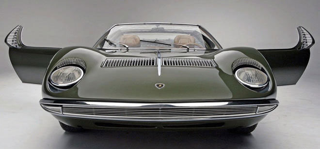 ランボルギーニ社は1963年創業。1965年11月、イタリアのトリノモーターショーに「TP400」というシャシーを出品する。ジャンパオロ・ダッラーラ氏が設計したTP400は、4.0リットルV12をミッドシップに搭載。当時、V12という大排気量エンジンをミッドシップに置くアイデアは画期的で、 TP400は大きな話題をさらった。