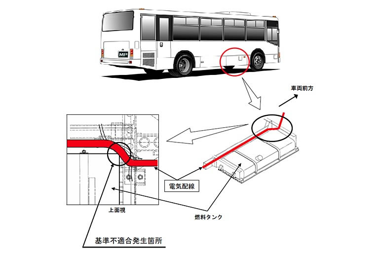 三菱ふそうは、エアロスターの電気装置(配線)に不具合が発生し、リコールを発表した。