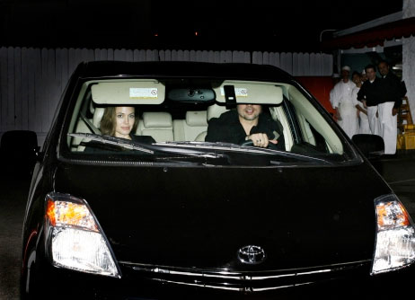 愛車のトヨタ・プリウスに乗るブラッド・ピット&アンジェリーナ・ジョリーです。