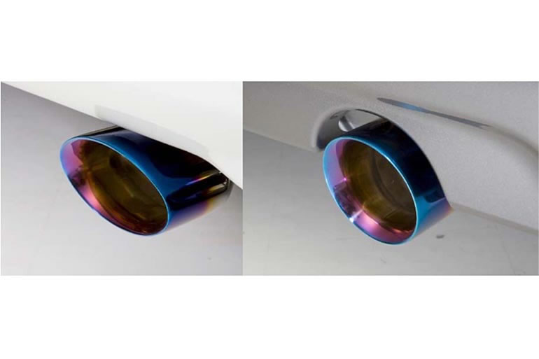 ミンクスマフラーは、車種別にテールエンドのベストマッチングを実現。バンパーの形状により、オーバルタイプと真円タイプと分かれている。