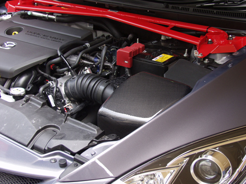 オートエクゼからリリースされている『ラムエアインテーク』に、現行マツダ・アテンザ用が追加された。アテンザスポーツ、スポーツワゴン、セダンの2.5Lエンジン搭載2WDモデルに適合する。