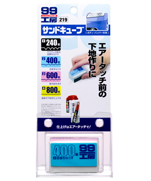 ソフト99から、同社製『エアータッチ』を塗布する前に、下地作りが簡単にできるキュービック型サンドペーパー『99工房サンドキューブ』が発売された。