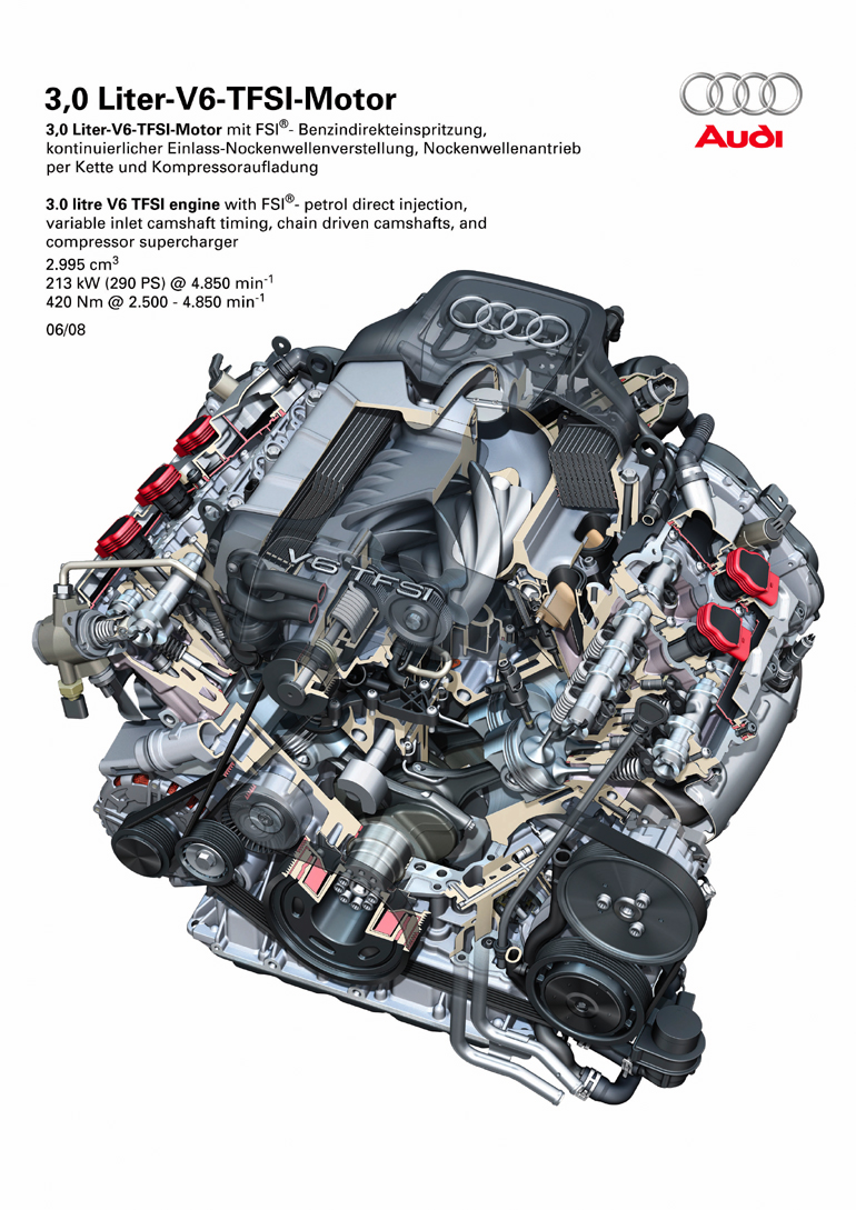 良いエンジンです。ターボが多いAUDIですが、久々のスーパーチャージャーは非常に気になります。トルクフルなんだと思います。一度乗ってみたいですね。