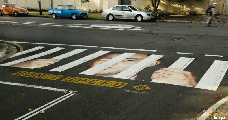 誰も交通刑務所に行きたくはないでしょうから、十分に気をつけましょう。こういう啓発のペイントは個人的には賛成です。