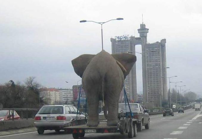 動いてしまえば乗用車でも何とかなるんでしょうけど、ゾウさんが耳を立ててブレーキかけていますね(笑)。でもすれ違う人はかなりビックリするでしょうね。大人しく乗っているので、賢い動物です。