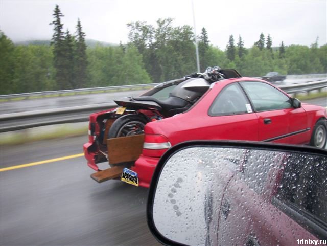 車でバイクを運んでいます。