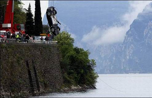 追跡現場の撮影だったみたいですが、スタントマンがアストンマーチンDBSのパワーをもてあましたして湖(イタリアのガルダ湖)に落ちるました。もちろん設定ではありません(笑)。雨で道路が濡れていたみたいですけど、本当にお気の毒様です。