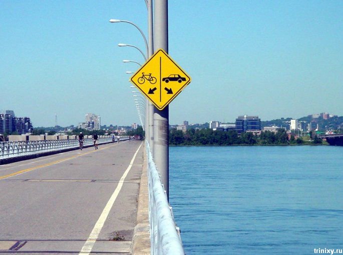 自転車優先道路って感じではないですが、それにしても車はこの扱いですか(笑)。川に沈めと・・・。でもなんでこんな場所に設置したんでしょうね。