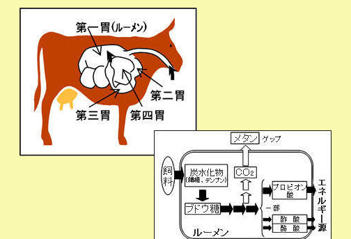 今回発見した天然素材は、「カシューナッツの殻から抽出した植物油」と、「酵母菌の一種であるシュードザイマが生み出すバイオサーファクタントと呼ばれる 界面活性剤」の2種類。研究により、ルーメンから発生するメタンを約90%低減できることや、低級脂肪酸中のプロピオン酸が約25%増加することが分かっ た。これにより、飼料をエネルギー源に換える効率が向上し、飼料の利用効率の改善が期待できるとしている。
