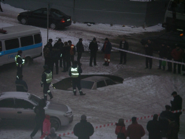 突然道路に穴が開いて、スッポリと埋まってしまったようです。