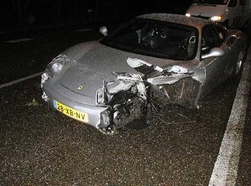 フェラーリー360モデナが激しく事故をしています。