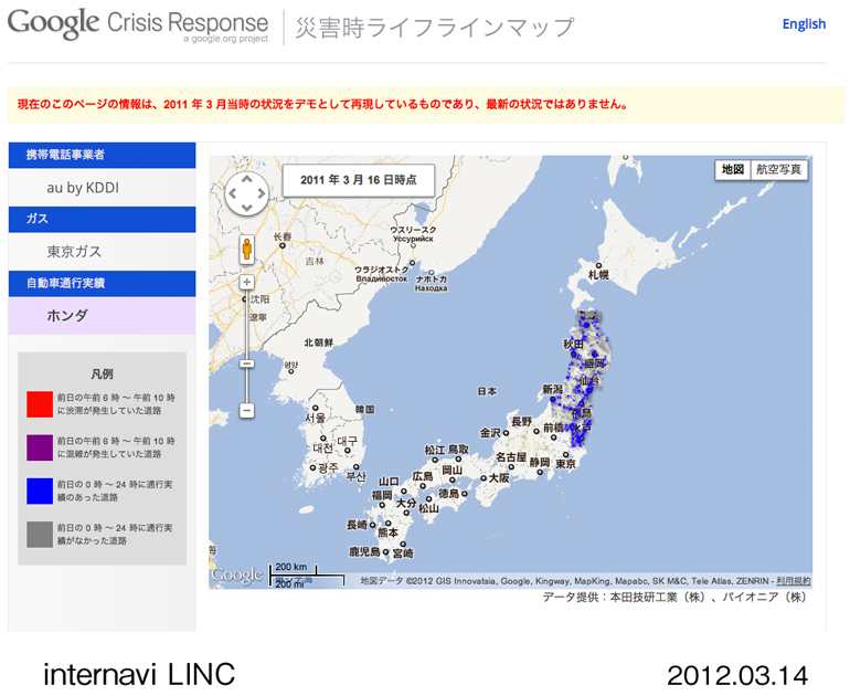 新たに追加されたサービスは、インターナビ・リンクのスマートフォン用アプリケーションの“防災・減災情報”。このサービスは、地震情報や津波情報といった災害に関する情報を受信した場合、ユーザーに警告するというもの。