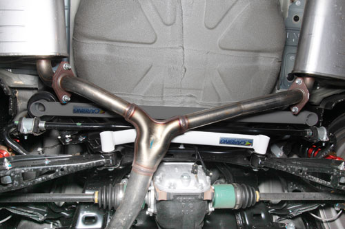 また、リアサスメンバー後端の左右取り付け部をつなぐのが『メンバーブレース』。リヤタイヤからのインフォメーションがより明確になり、ステアリング操作初期の挙動に一体感が出る。