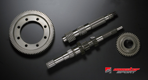 スイフトスポーツでスポーツ走行をすると、1速から2速のギヤ比が離れているために、シフトアップしたときに回転が落ちすぎてしまう。それを解決するためにモンスタースポーツから登場したのが、『スイフトスポーツ用スーパークロスギア』だ。