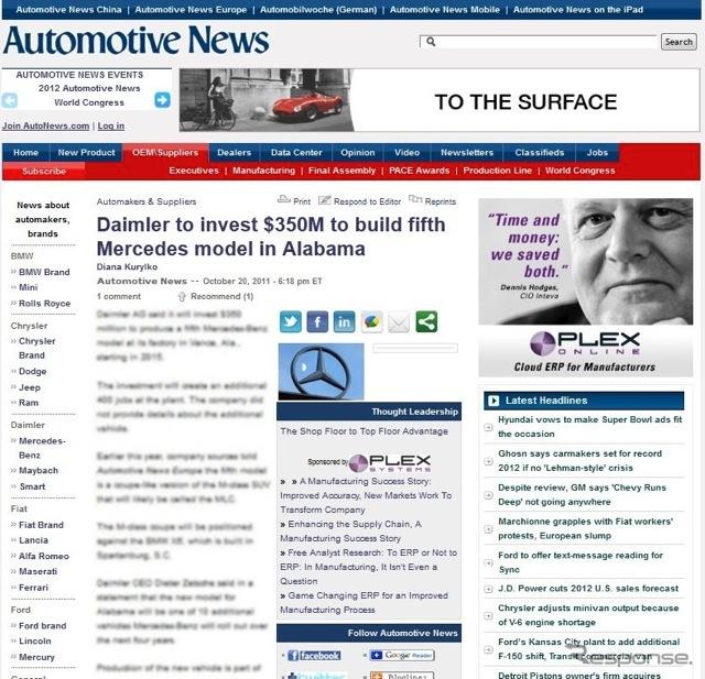 ダイムラーは21日、メルセデスベンツの米国アラバマ州タスカルーサ工場において、2015年から新たなモデルの現地生産を開始すると発表した。