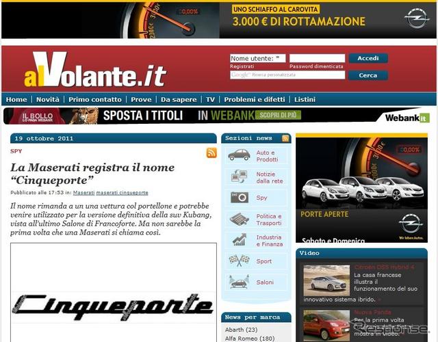 19日、イタリアの自動車メディア、『al Volante.it』が伝えたところによると、マセラティは欧州において、『Cinqueporte』(チンクエポルテ)というネーミングを商標登録。これが、Kubangの市販バージョンの車名になるという。