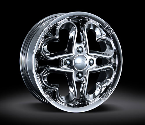 『ジュエル・ハート』は女性向けにデザインされたホイールで、4つのハートを配置したデザインやラインストーンなどでデコレーションできるセンターキャップが特徴。用意されるサイズは軽カー用の15×5.0Jのみだったが、今回、軽カー純正サイズの14×4.5Jに加え、マーチやフィット、ヴィッツなどにマッチングする15×6.0Jが追加されて、より幅広い車種への装着が可能になった。