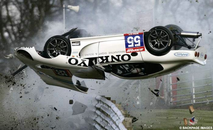 F1などフォーミュラーカーはしっかりと事故に対応したボディーを作られていますが、市販車ベースの車はそうも行きません。激しくフォールにぶつかった後、この車はどうなるのでしょうか?