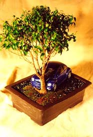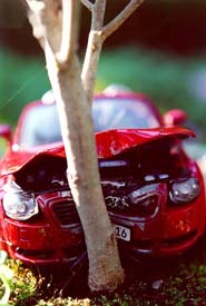 ワーゲンビートルが気にぶつかって事故を起こしています!