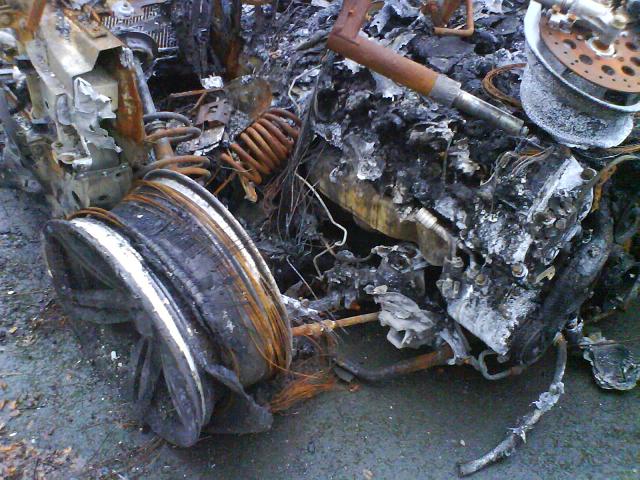塗装もタイヤもエンジンも、全て燃え尽きています。