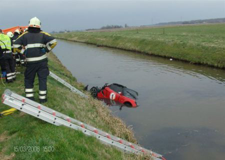 深くない川で良かったと思いますが、車高が低いですからこの車(笑)。